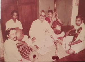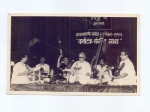 Chamber music held at residence. Mrs. Gomathy is accompanying in Thambura and elder son K. Viswanadhan is accompanying in Violin.