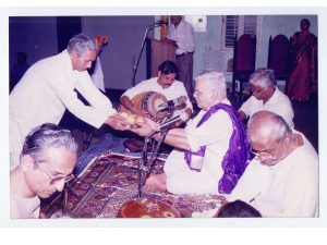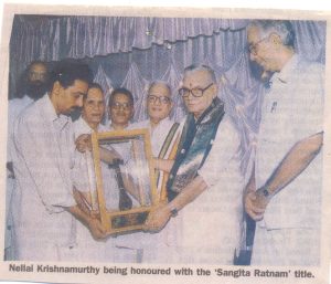 Honored with the Sangeetha Nataka Academy Fellowship Award in 2001. Sitting along with Shri. Nellai Krishnamoorthy is Shri. B Sasikumar, A top artist in Violin, who also received the same Award in the same year. Photo -1