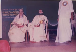 In 2001, the Government of Kerala recognised his contributions to the field of music, by honouring him the title – “Manaveeyam-Prathibha Pranaamam”. In the same year he performed at the “National centre for Performing Artists, Tata Institute for Research Work, Mumbai. He presented a 2-hour concert that included only Muthaiah Bhagavathar’s compositions. The audio recording of the concert is available at the Centre even now, to help students who are doing research in music.