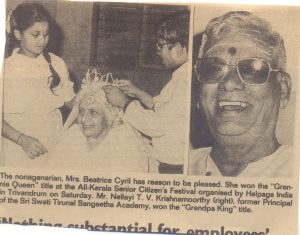 In 1991, Helpage India conducted a “smiling contest” at Thiruvananthapuram and Sri Krishnamurthy was selected as “Grandpa King”.