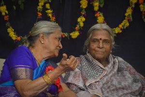 Smt. S. Rugmini, along with her studious disciple, Smt. Sugathakumari, a distinguished poetess of Kerala, during Sapthathi celebrations.